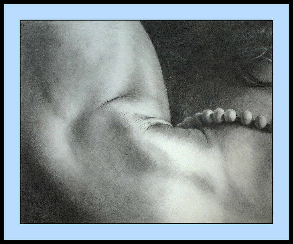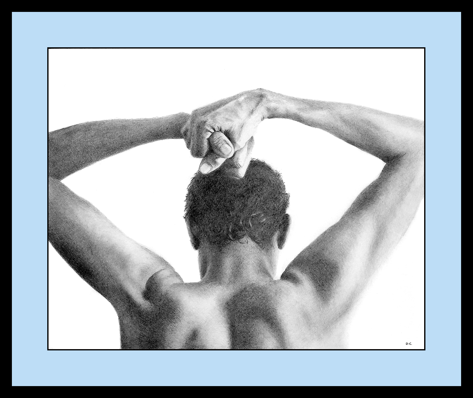 Graphite pencil drawing; 25.5 x 25.5 cms. Private collection.