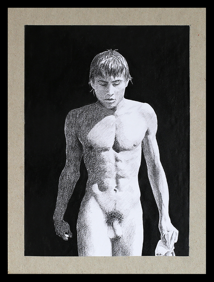 Drawn with graphite & charcoal; 30 x 30 cms.