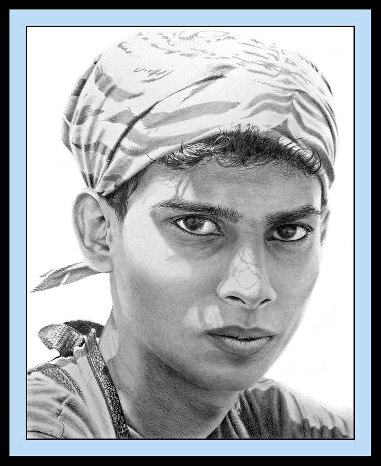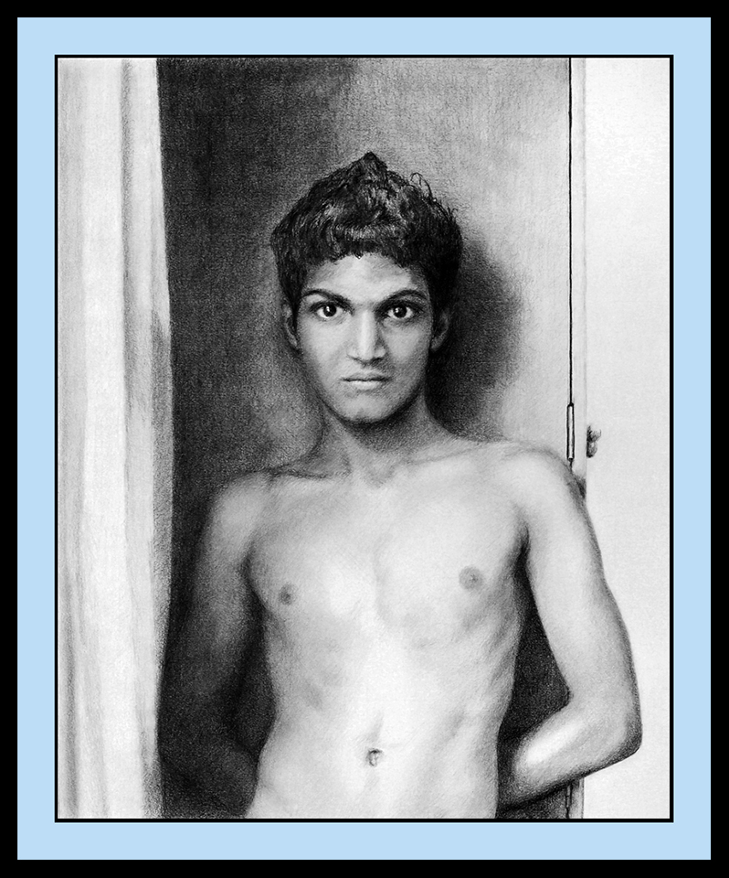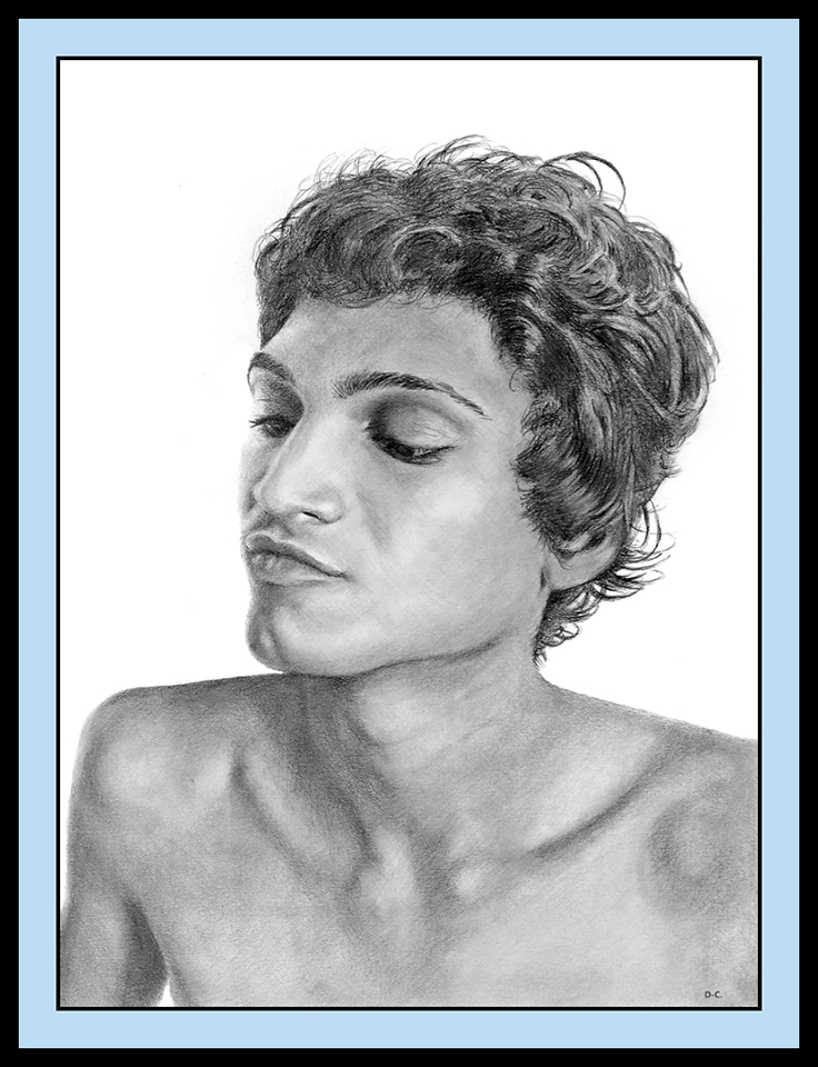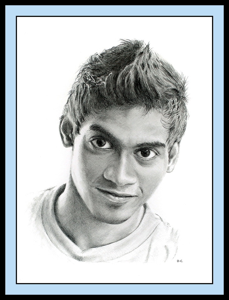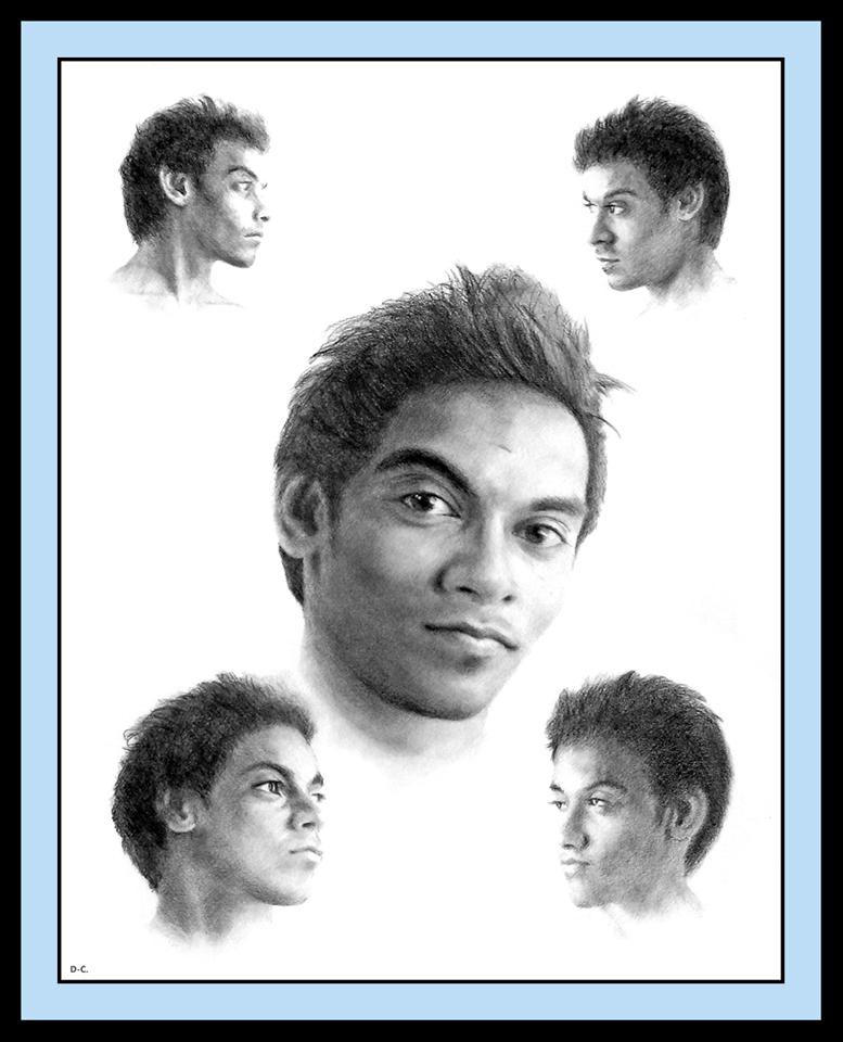 A series of portraits of a young man, Nilhan, drawn with graphite pencils on paper; 11 x 14 inches.