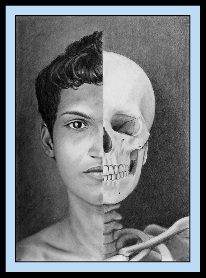 Drawn with charcoal and graphite pencils on paper; 38.25 x 28.75 cms