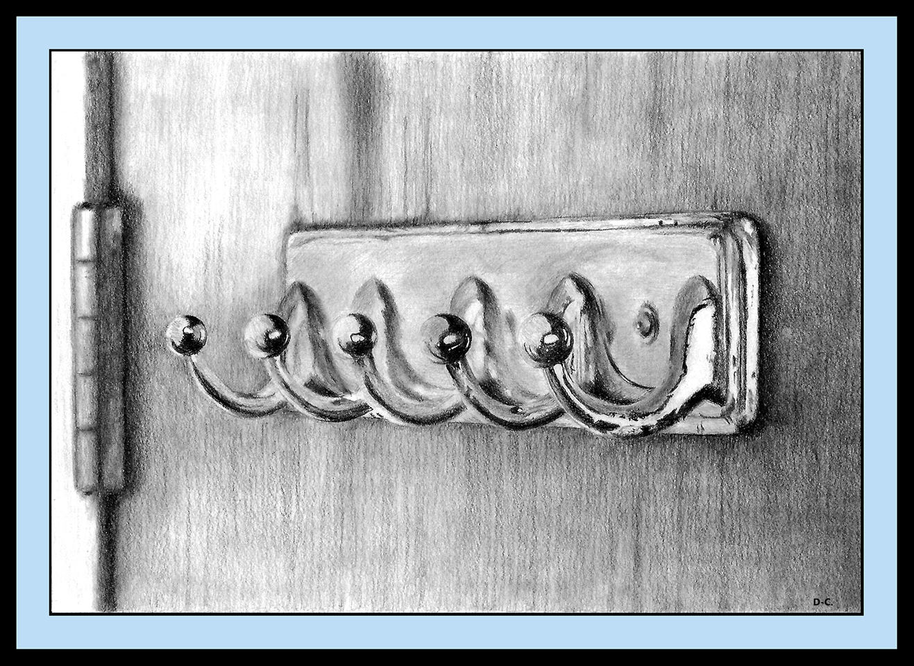 Drawn with graphite, carbon and charcoal pencils on paper; 13.5 x 10.5 inches. Private collection.