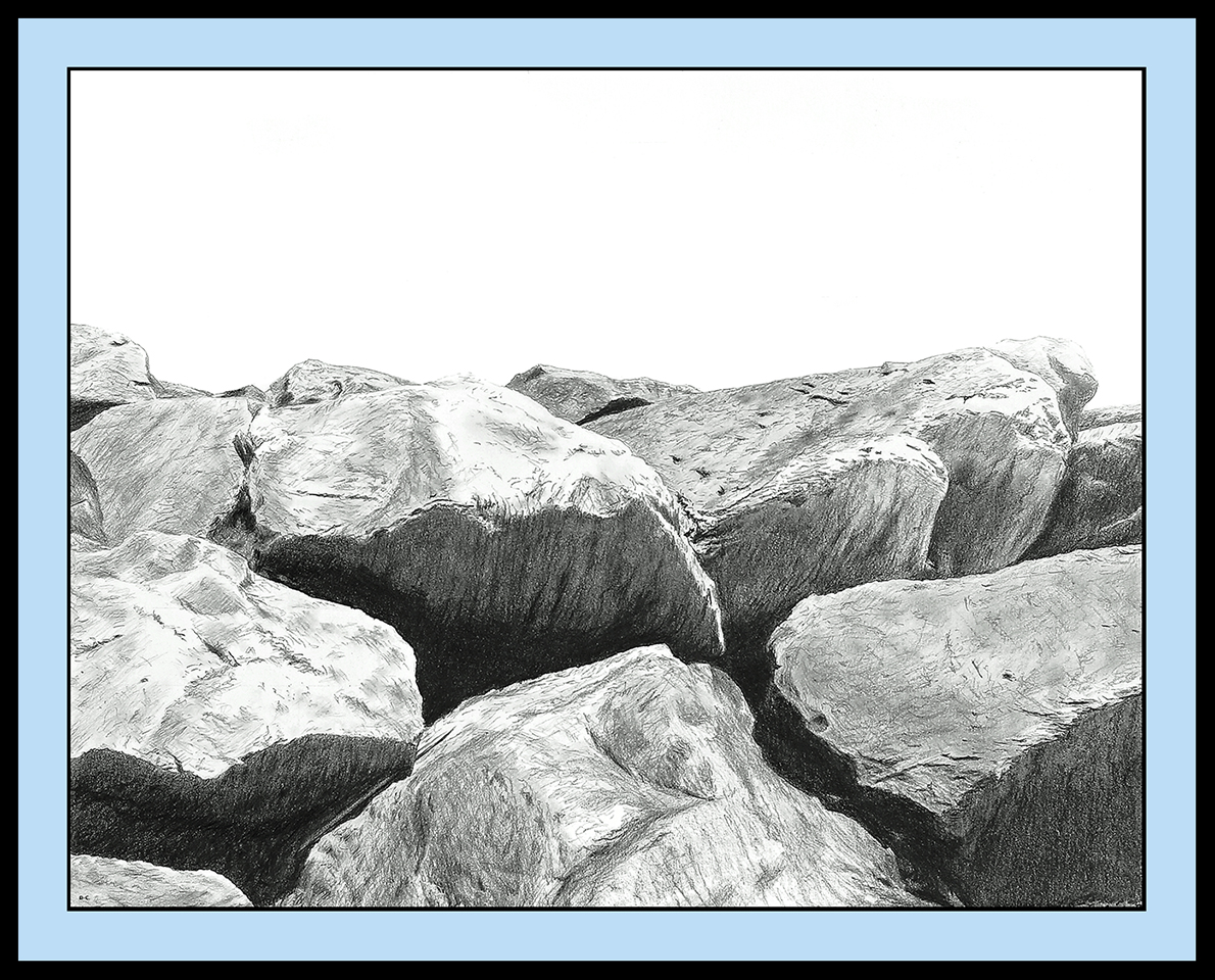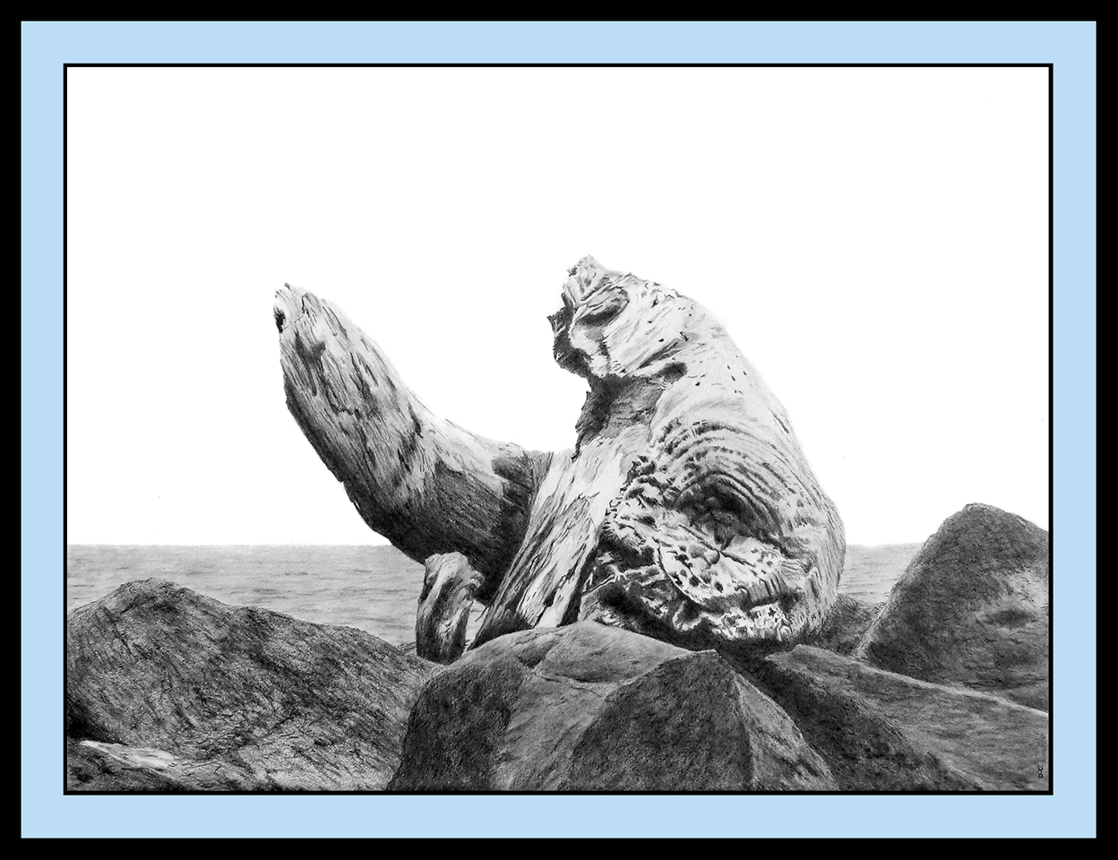Drawn with graphite, carbon and charcoal pencils on paper; 13.5 x 10.5 inches. Private collection.