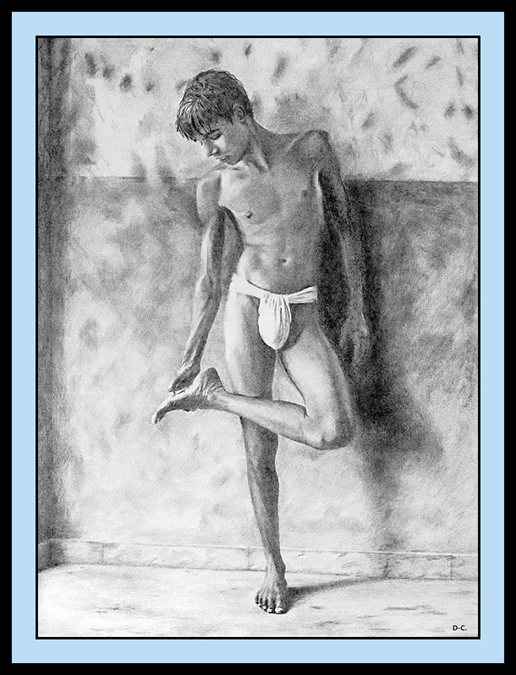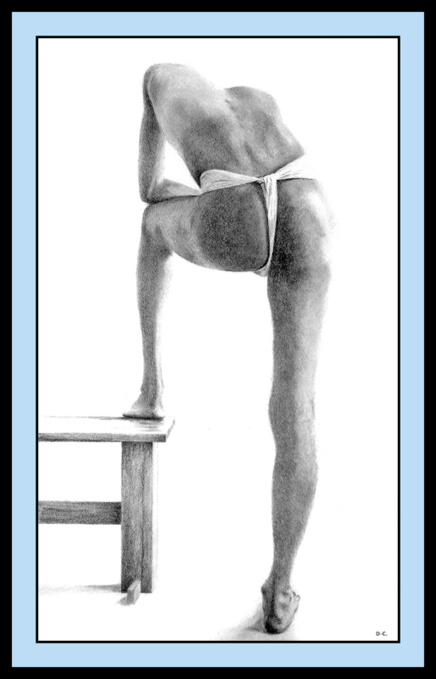 This pose is also sometimes known as the “Flandrin” pose after the famous painting *Nude Young Man Sitting at the Sea Shore* (1836) by J-H Flandrin. The pose was also much used by William Blake but usually viewed from in front to denote emotions such as despair and hopelessness.