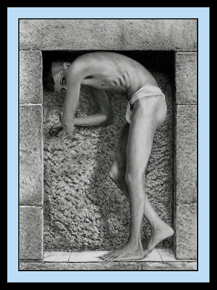*What Are You Looking At – 2?* Drawn with graphite, carbon and charcoal pencils on paper; 25 x 35 cms.