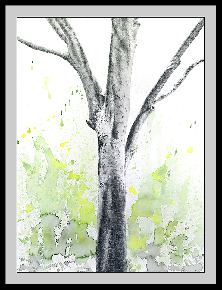 Created with watercolour and graphite, carbon and charcoal pencils on paper; 11 x 15 inches.